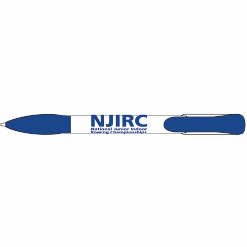 Spring activated ballpoint pen featuring NJIRC logo printed to barrel.